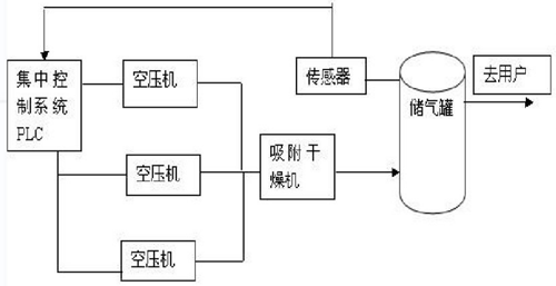 ● 空壓機數(shù)量少,可采用一臺變頻空氣調(diào)壓,如果數(shù)量上了4、5臺,完全可以通過合理的參數(shù)設置、合理的大小配置和前面提到的手段達到很好的節(jié)能效果