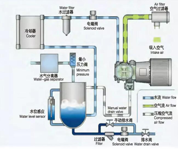 水潤(rùn)滑無(wú)油螺桿機(jī)系統(tǒng)基本都是可自動(dòng)根據(jù)設(shè)置的換水周期實(shí)現(xiàn)不停機(jī)下自動(dòng)換水為客戶省心。
